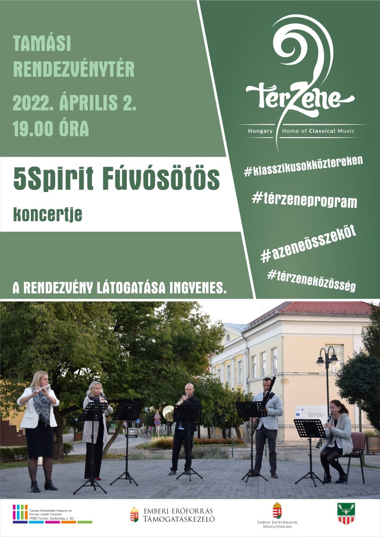 Most szombaton, a 5Spirit Fúvósötös érkezik Tamásiba, melynek tagjai Szilágyiné Pichler Dóra fuvolán, Murin Roman oboán, Vadász Katinka klarinéton, Szilágyi Lajos kürtön, Szántai Csaba fagotton játszik. Ők már ismerősek lehetnek a helyi közönségnek, hisz karanténkoncertek idején is megörvendeztettek már bennünket fúvós muzsikájukkal.